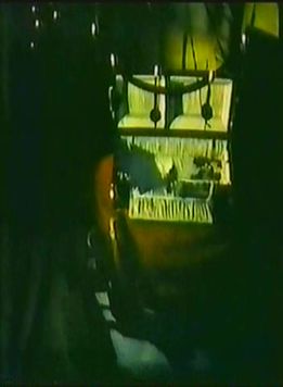 collapsed phone booth as Dracula's dogs, Desdemona and Othello,